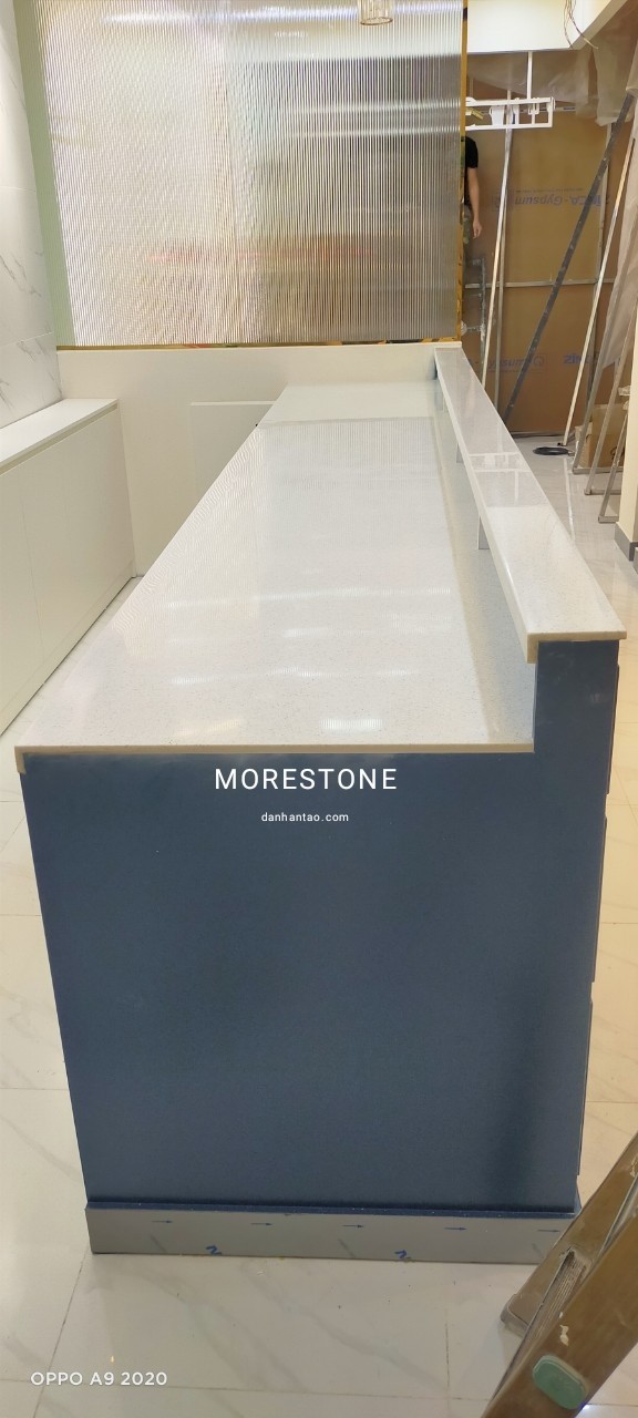 Thi công ốp mặt đá quầy lễ tần, uốn cong cạnh 2 bên Mã đá: G047