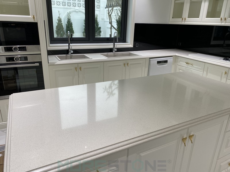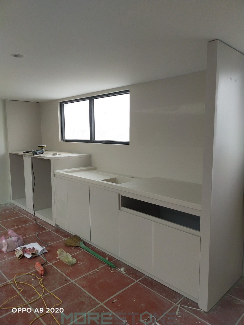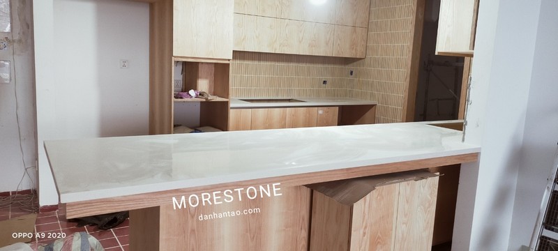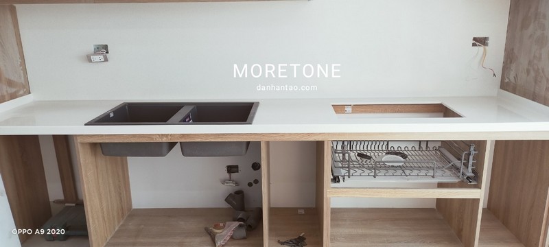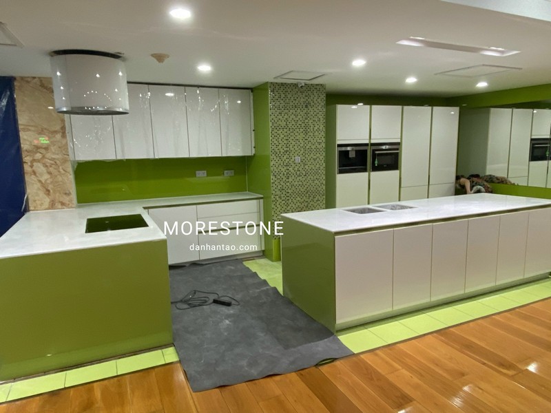 Cùng Morestone ngắm nhìn mẫu đá bếp màu trắng thi công tại chung cư Thăng Long Number 1