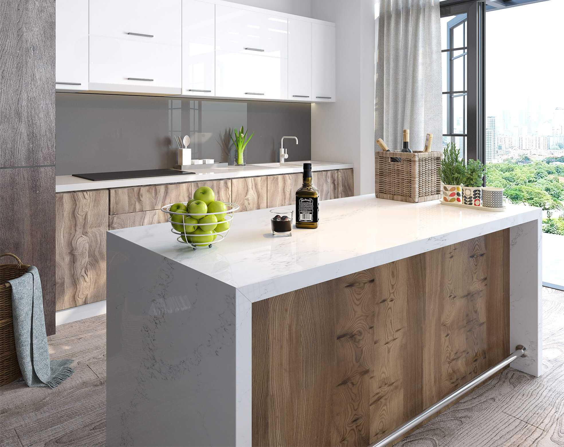 Đá nhân tạo ứng dụng hạng mục thi công: Làm mặt bàn bếp, ốp bếp, ốp bàn lavabo...