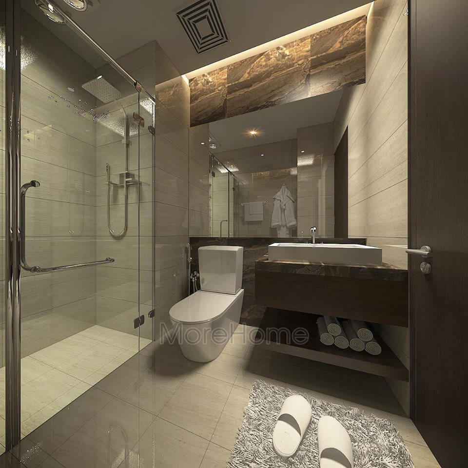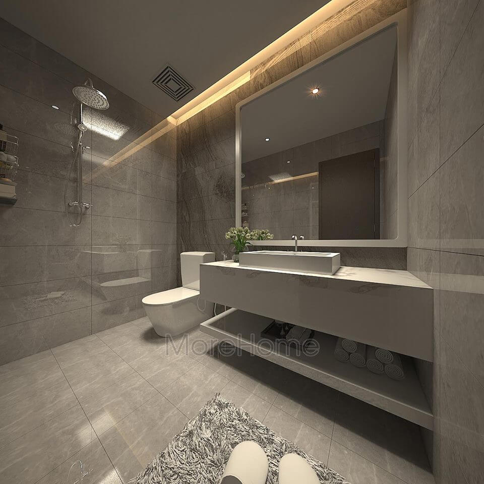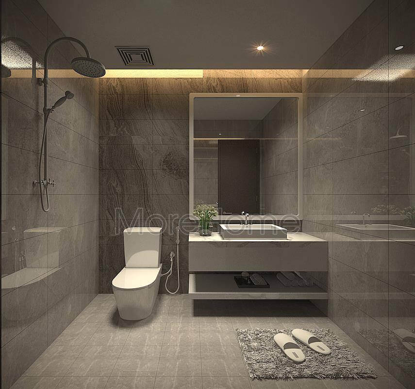 Hạng mục thi công: Nhà tắm chung cư, ốp bàn lavabo, tường và sàn nhà tắm, ốp bồn tắm