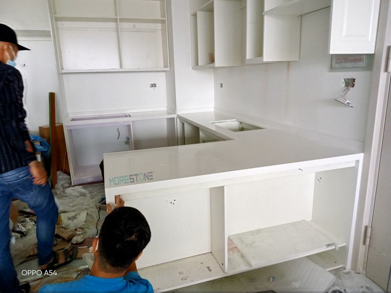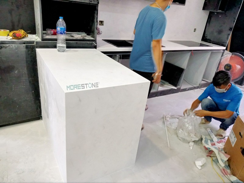 Một sản phẩm đá đẹp không chỉ phụ thuộc vào chất liệu tốt, mà còn phụ thuộc vào tay nghề thi công của đội ngũ thi công lắp đặt, mang tới vẻ đẹp hoàn thiện cho tổng thể sản phẩm. Cùng Morestone tìm hiểu về quy trình thi công lắp đặt đá bếp tại công trình.