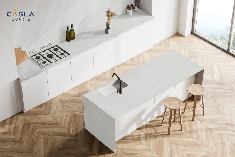 Với mặt bếp đá nhân tạo Casla Quartz tone màu trắng luôn được khách hàng ưu tiên chọn lựa.