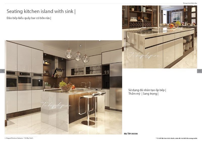Sản phẩm tủ bếp gỗ đẹp hiện đại bằng gỗ tự nhiên và gỗ công nghiệp acrylic sang trọng