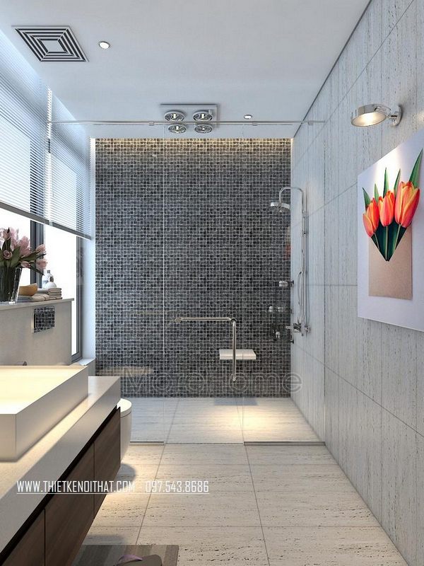 Sử dụng đá ốp phòng tắm tông màu xám lạnh mang đến một không gian phòng tắm tuyệt vời.