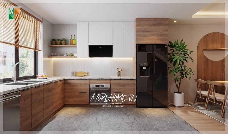 Phòng bếp - Không gian thôi thúc những bước chân trở về nhà sau 1 ngày làm việc mệt nhọc. Hãy để Morehome đồng hành cùng với bữa ăn của mỗi gia đình. Liên hệ ngay hotline 0931.31.88.77 khi cần.