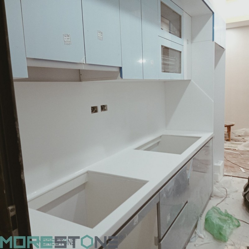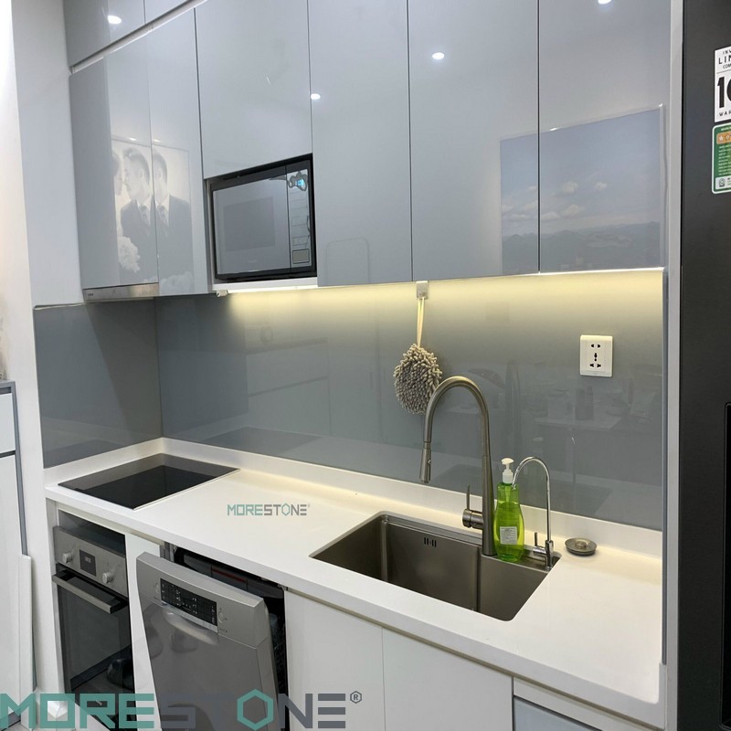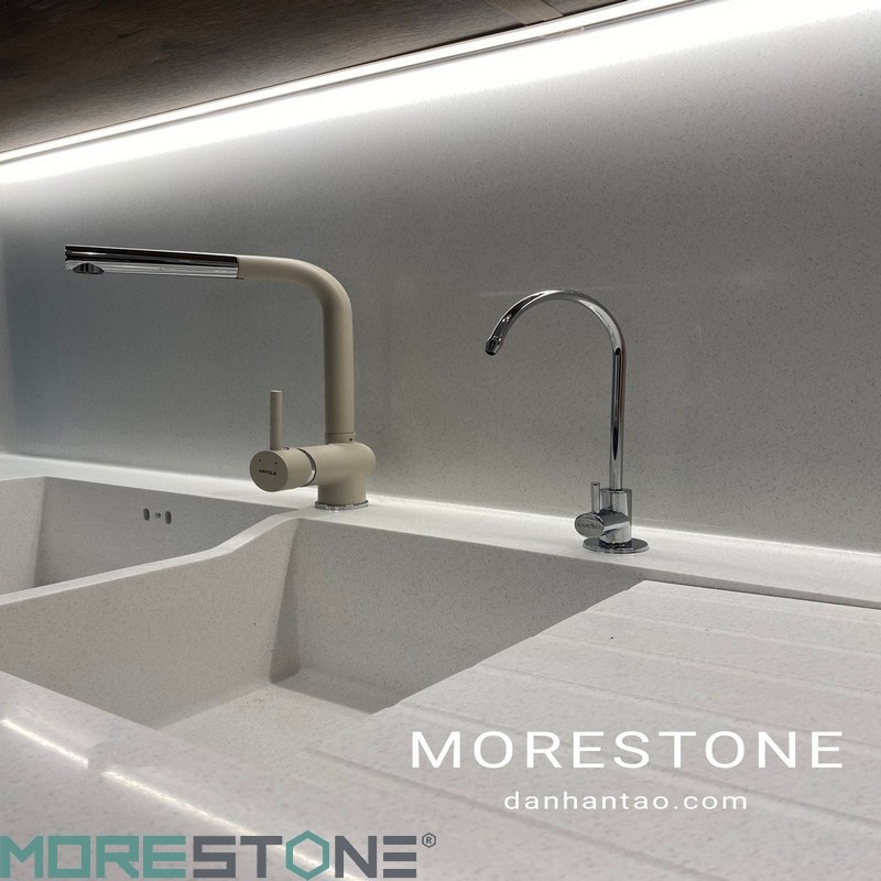 Riêng với đá bếp, với nhiều năm kinh nghiệm và là chuyên gia trong nghề, Morestone khuyên bạn nên lựa chọn các dòng đá nhân tạo chất lượng, với công nghệ sản xuất bề mặt chống ngấm ố hiện tại, đảm bảo chất lượng của sản phẩm.