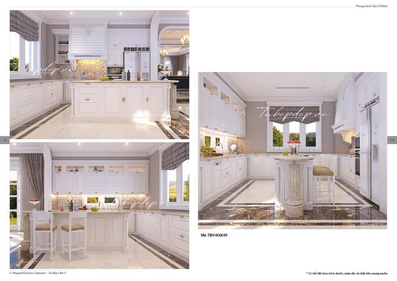 . Hãy tận dụng ánh sáng từ bên ngoài để tạo nên một không gian sáng trắng tăng thêm độ sáng mà vẫn giữ được độ sang trọng và đẳng cấp cho biệt thự, nhà phố. KTS sẽ giúp bạn thiết kế một phòng bếp tân cổ điển theo ý muốn của bạn.