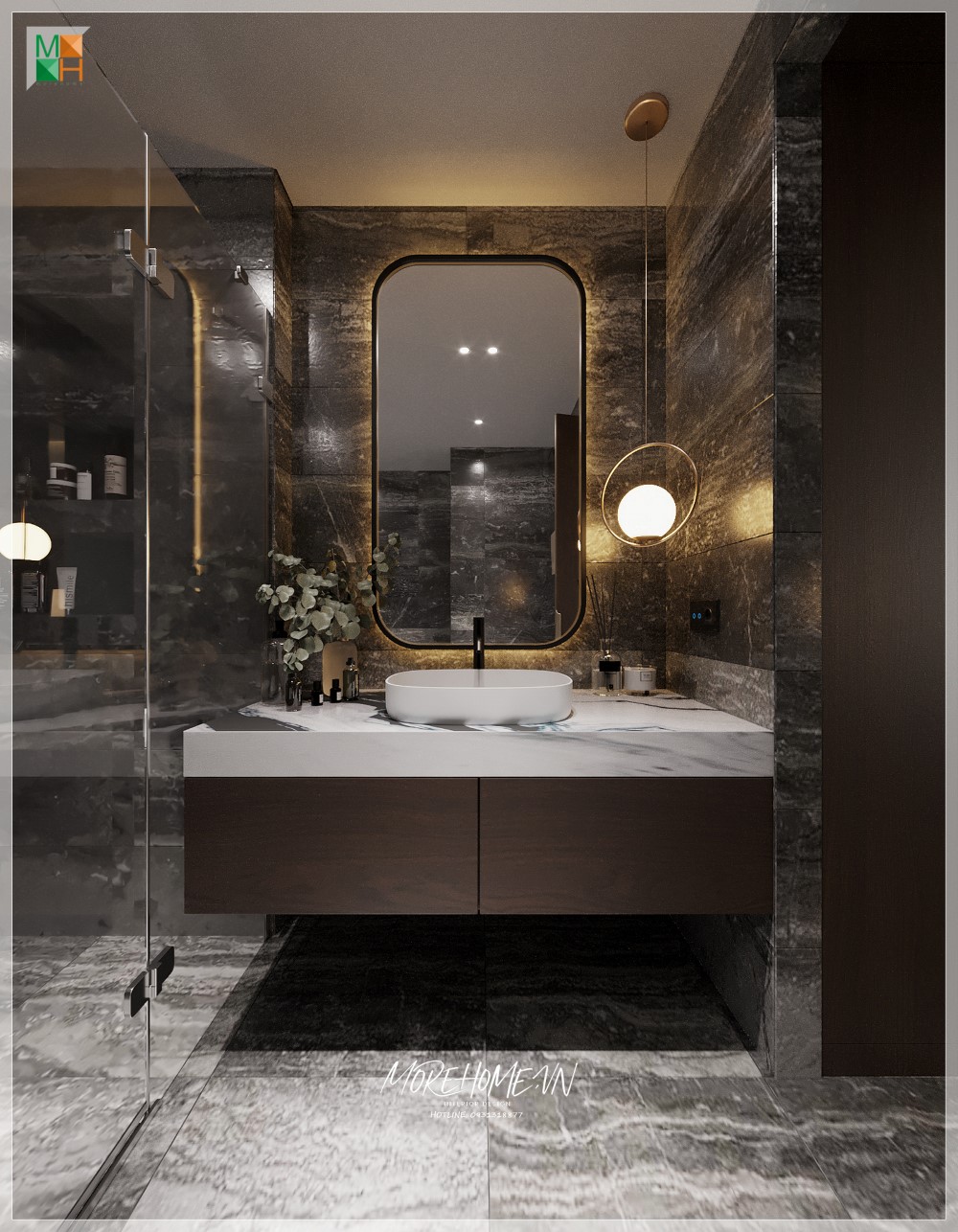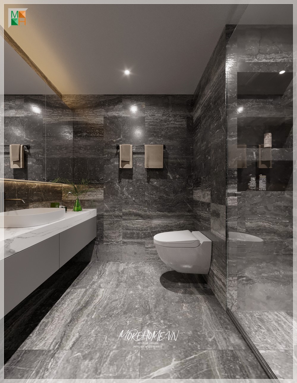 Thiết kế phòng tắm nội thất hiện đại, đầy đủ tiện nghi, giúp người dùng thoải mái trong việc sử dụng hàng ngày và có tính thẩm mỹ cao.