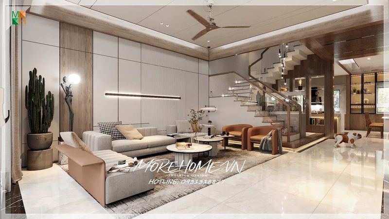 Sàn phòng khách là loại đá lát nền được sản xuất với gam màu sáng, tượng trưng cho sự may mắn và hiện đại. Ngoài ra, độ bóng và nhẵn của nó cũng rất thích hợp cho việc lau dọn vệ sinh.