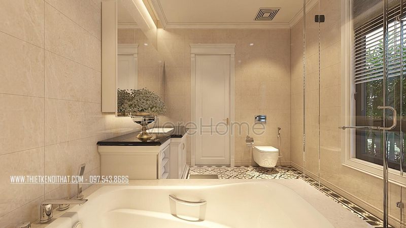 Cửa gỗ 1 cánh gỗ tự nhiên màu trắng tân cổ điển phòng tắm mang tới không gian phòng tắm tinh tế hiện đại đạt thẩm mỹ cao.